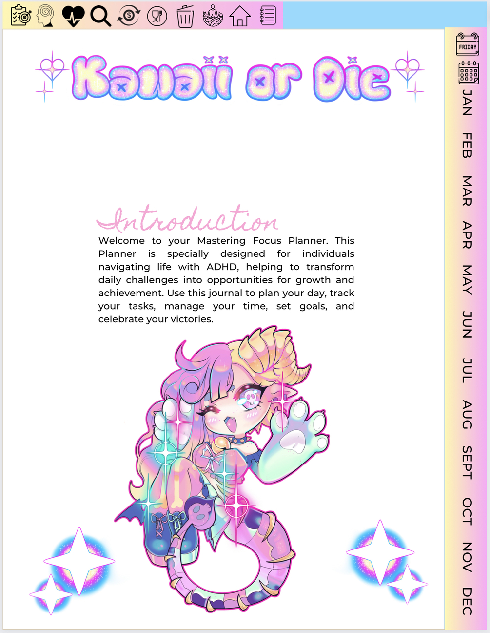 This planner features easy-to-navigate hyperlinks, along with a Kawaii design and user-friendly minimalist layout.